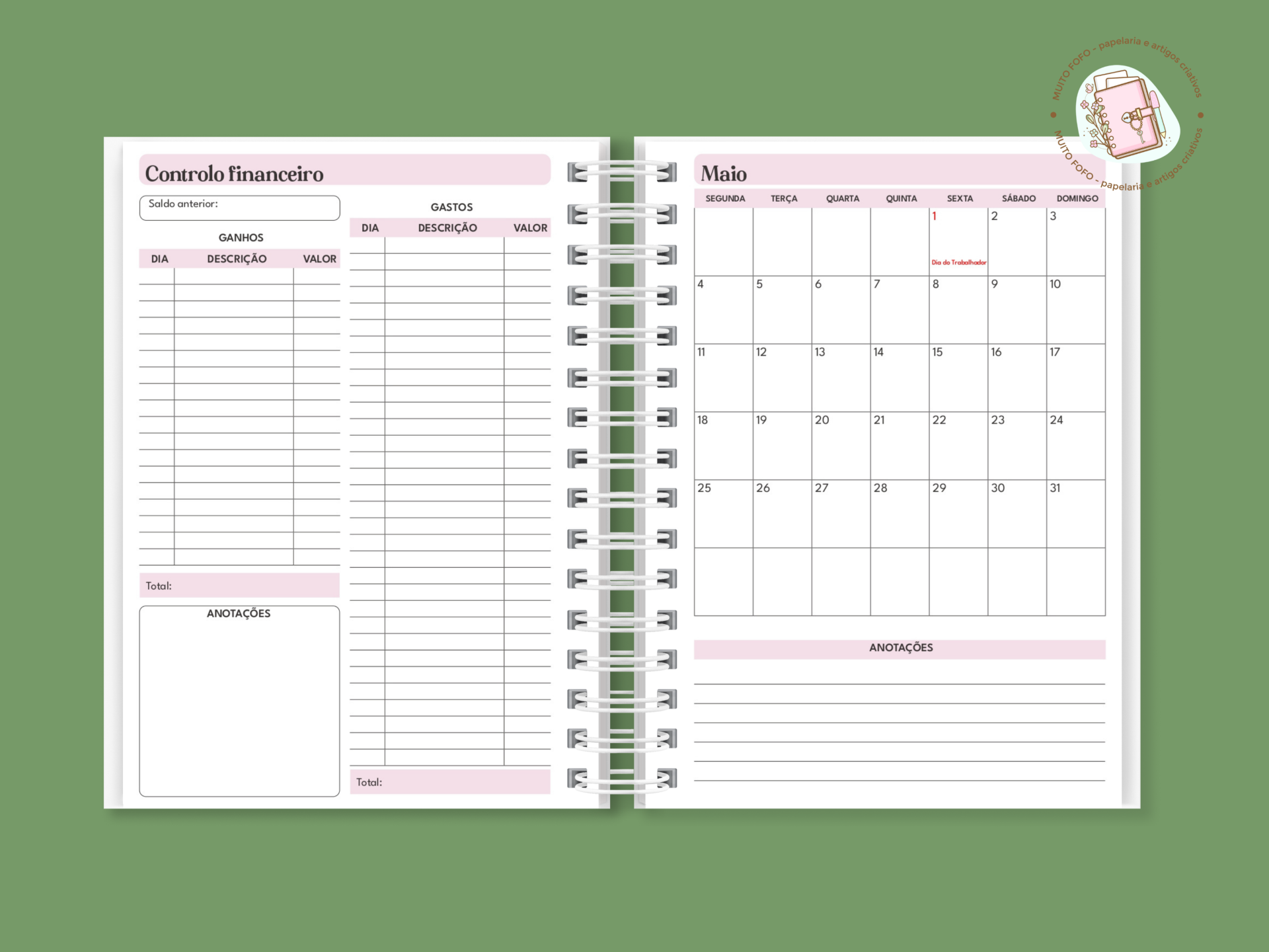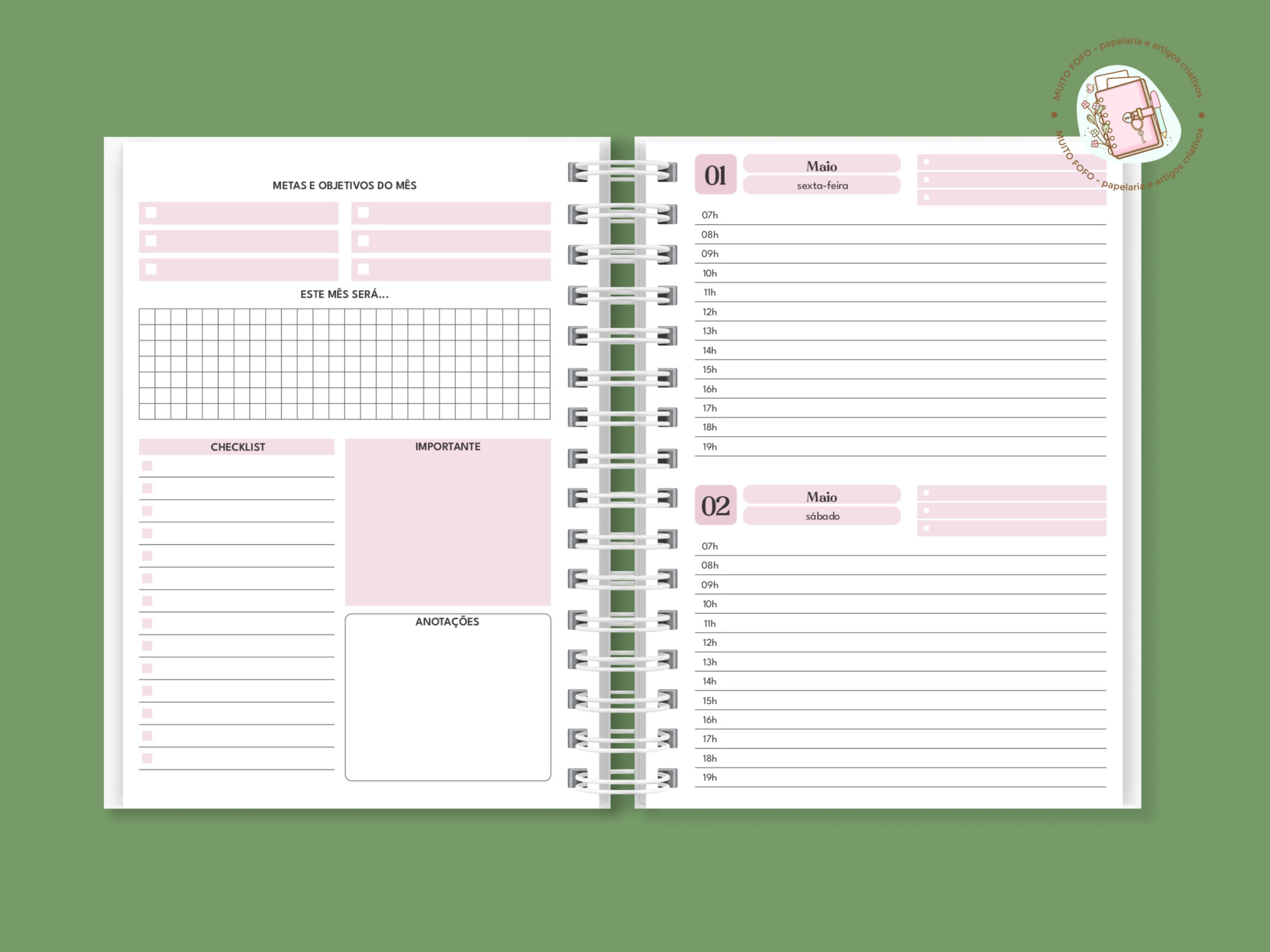 Agenda A5 Datada 2026 composta por:
