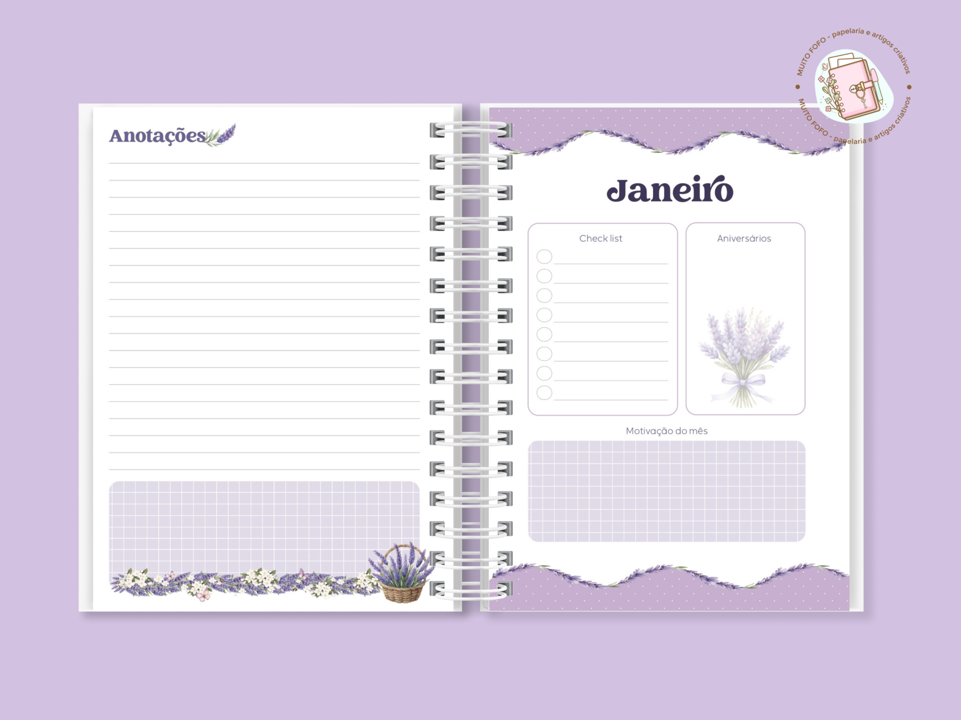 💜Agenda A5 Permanente – Coleção Lavanda