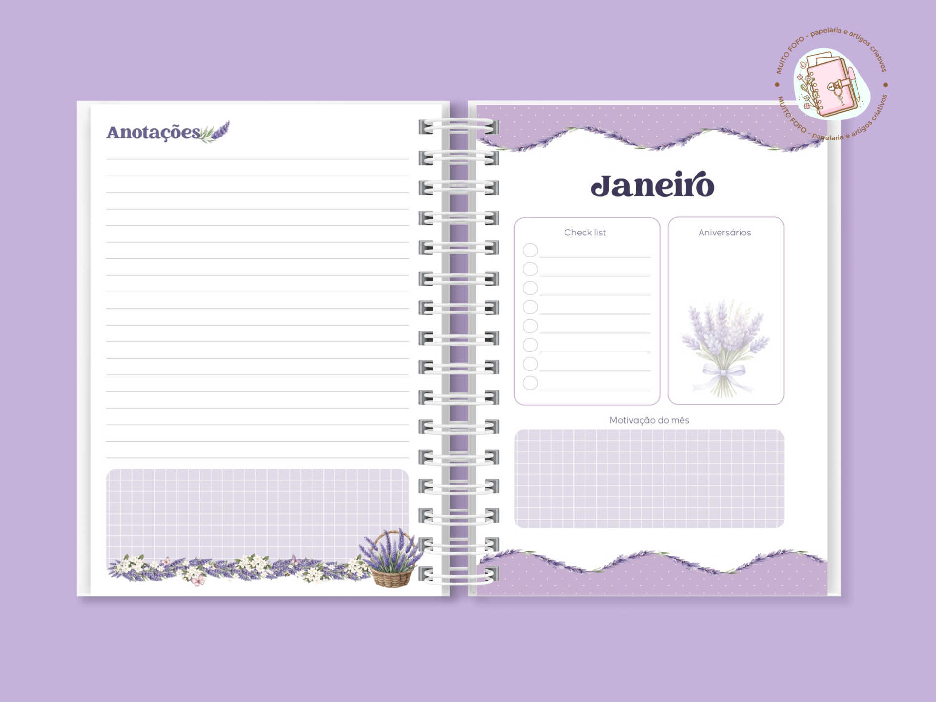 💜Agenda A5 Permanente – Coleção Lavanda