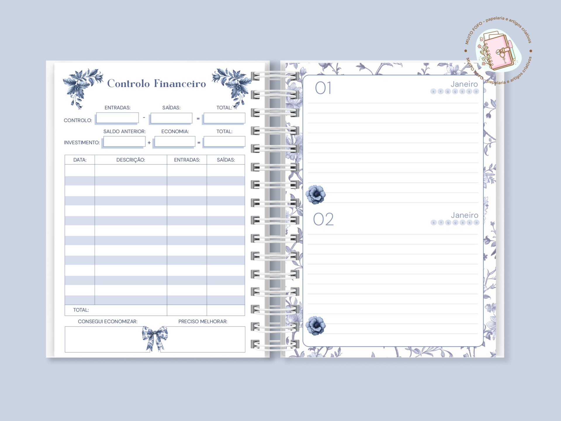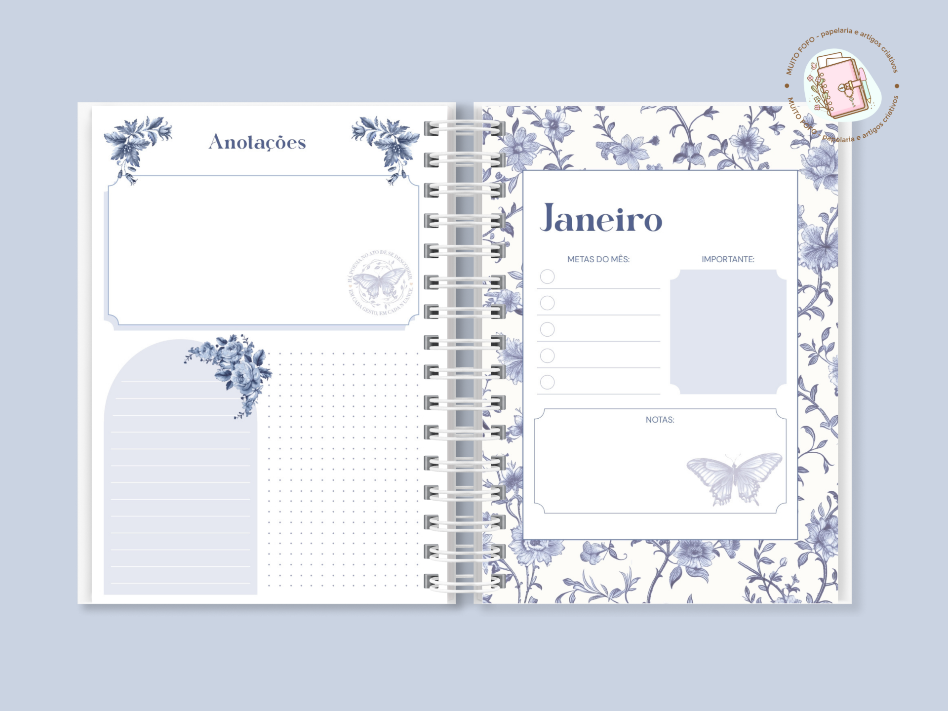 Elegância clássica com o charme artesanal da Muito Fofo®. A Agenda Permanente da Coleção Toile de Jouy foi criada para quem ama organização com estilo — e não dispensa sofisticação no dia a dia 💼✨