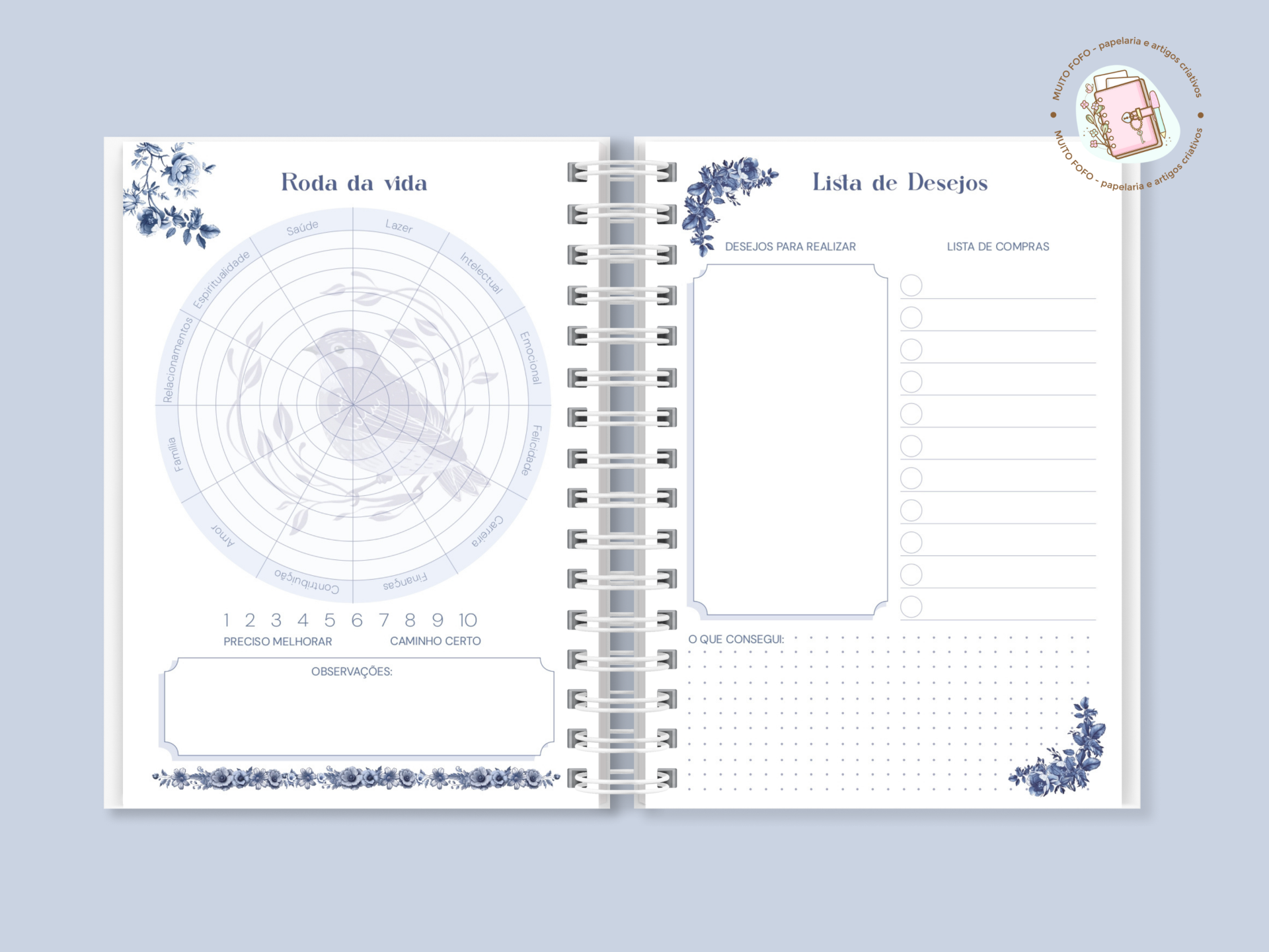 • Página inicial de identificação • Calendários 2026 e 2027 • Contactos importantes • Logins & Senhas • Plano anual • Roda da Vida — equilíbrio e bem-estar ✨ • Lista de desejos • Lista de compras • Anotações