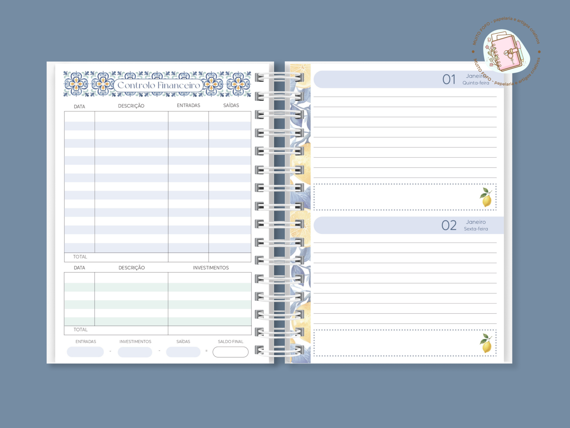• Controlo financeiro e espaços para anotações