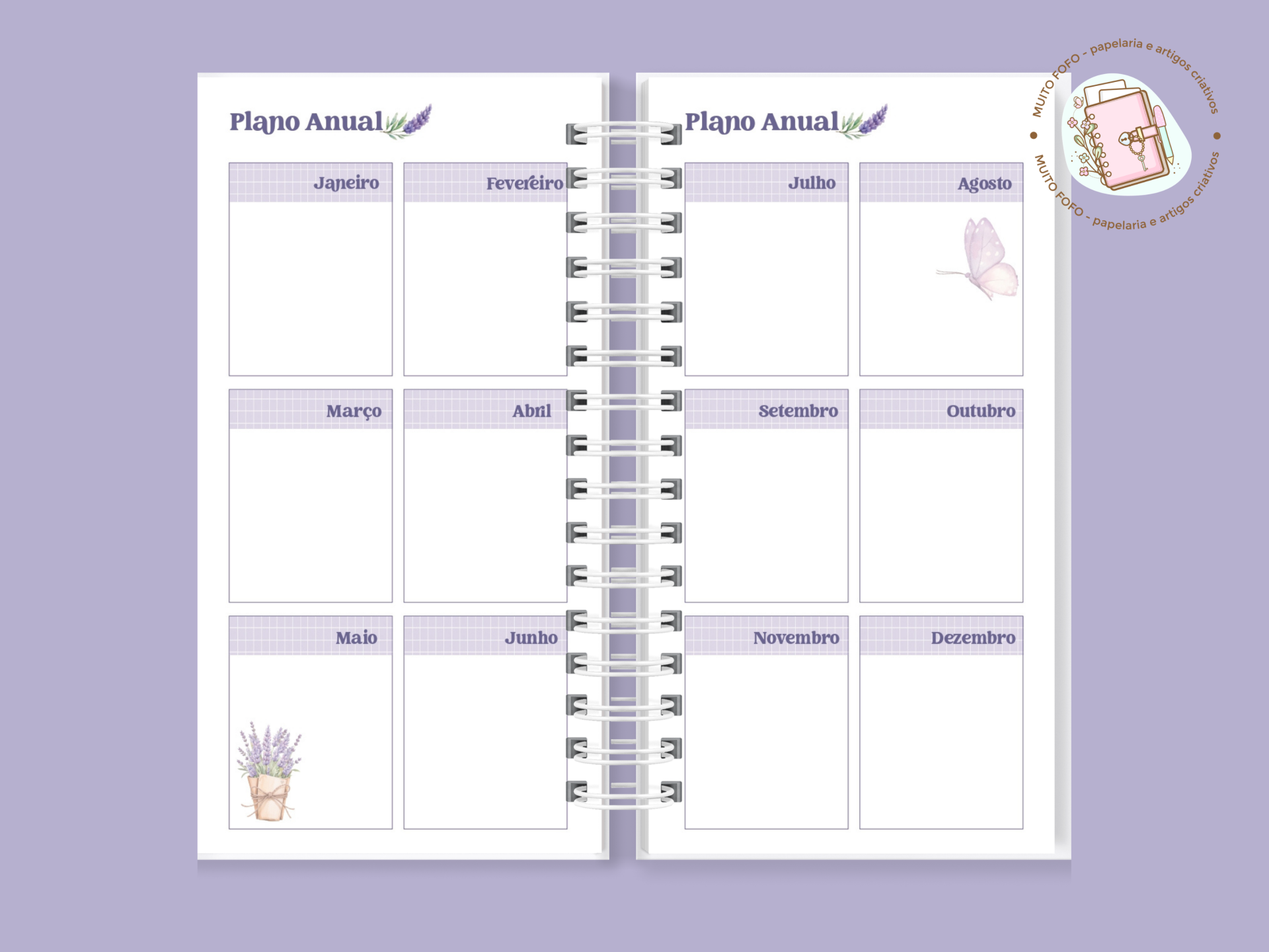 • Páginas mensais com checklist, aniversários e motivação do mês
