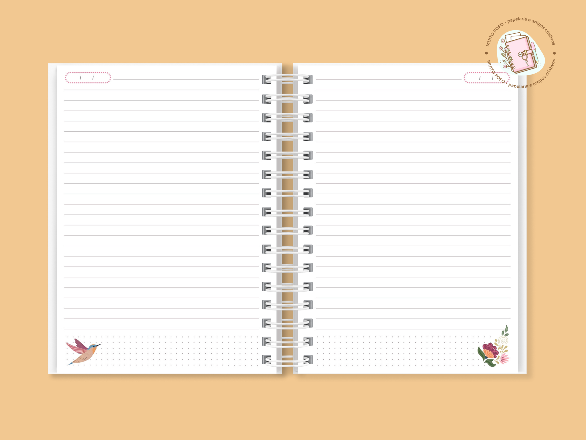 • 160 páginas pautadas, decoradas com ilustrações delicadas do tema Pássaros