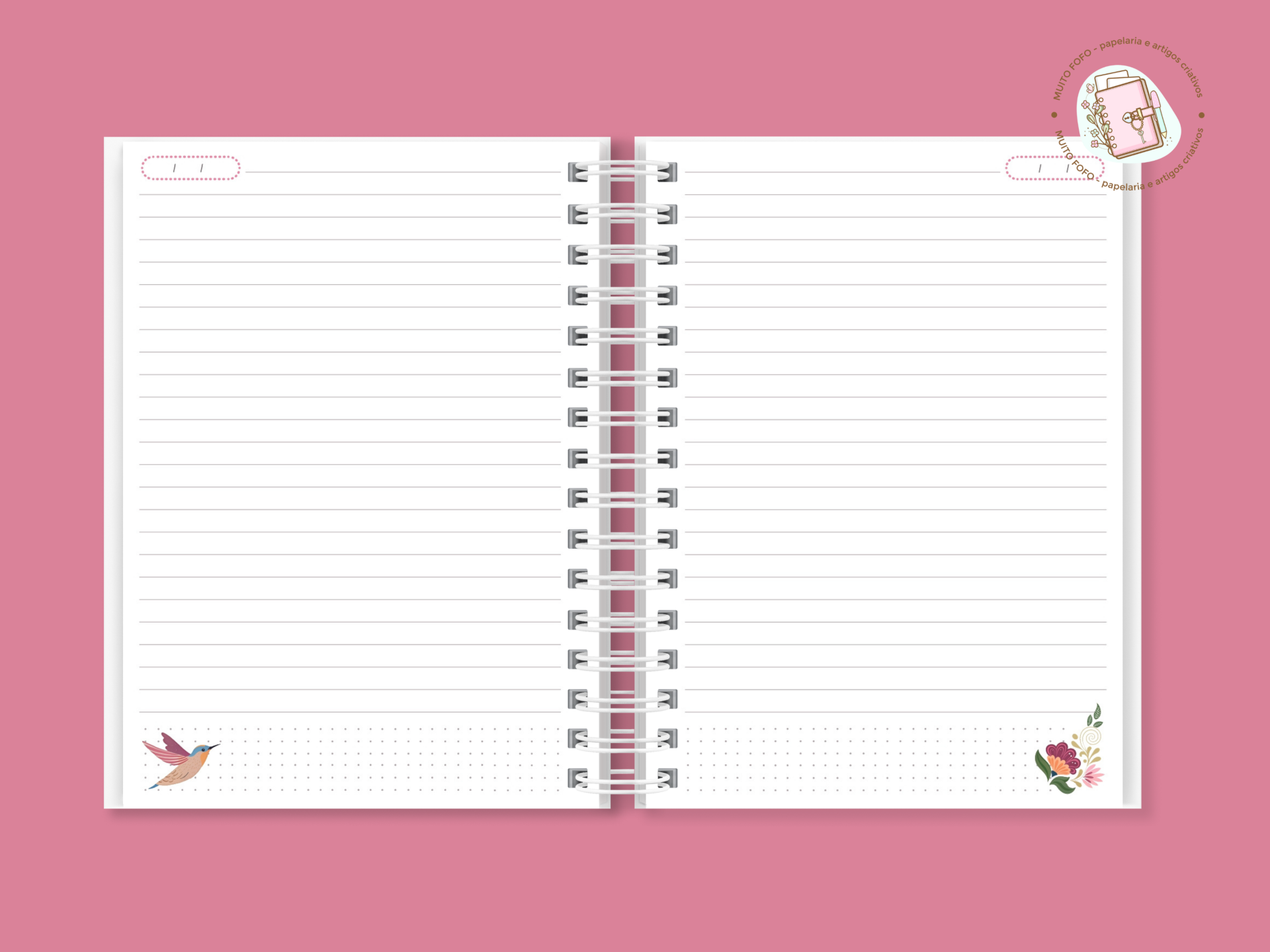 • 160 páginas pautadas, decoradas com ilustrações delicadas do tema Pássaros
