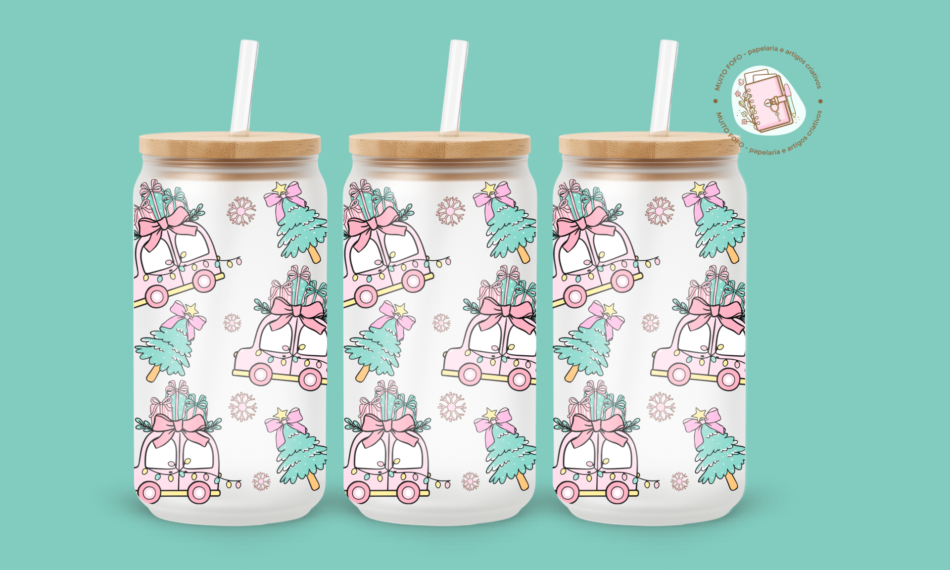 Preparada para espalhar a magia natalícia por onde fores? ✨ O Copo Carro Encantado traz toda a fofura do Natal: um carrinho vintage carregado de presentes, luzinhas a piscar e a árvore perfeita no tejadilho, tudo num estilo muito doce e feminino 🎀