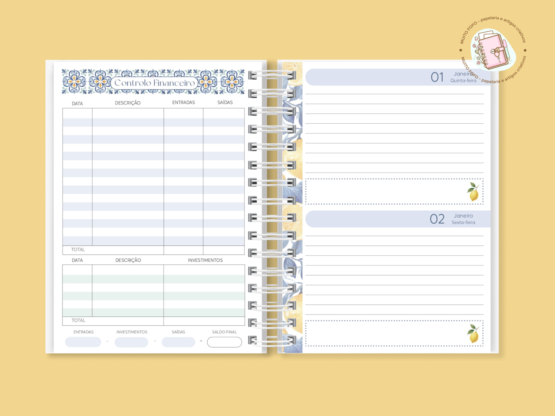 • Controlo financeiro e espaços para anotações