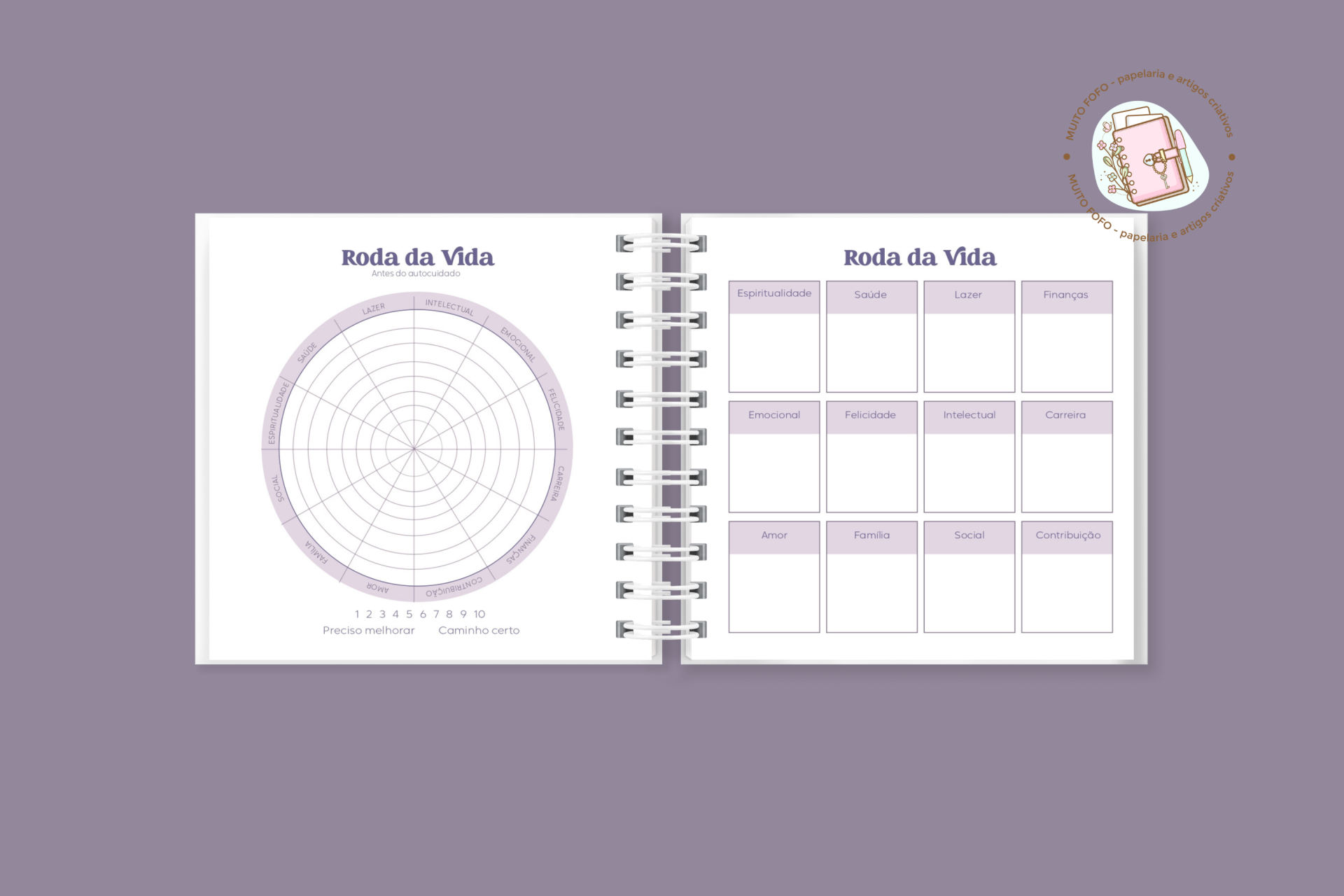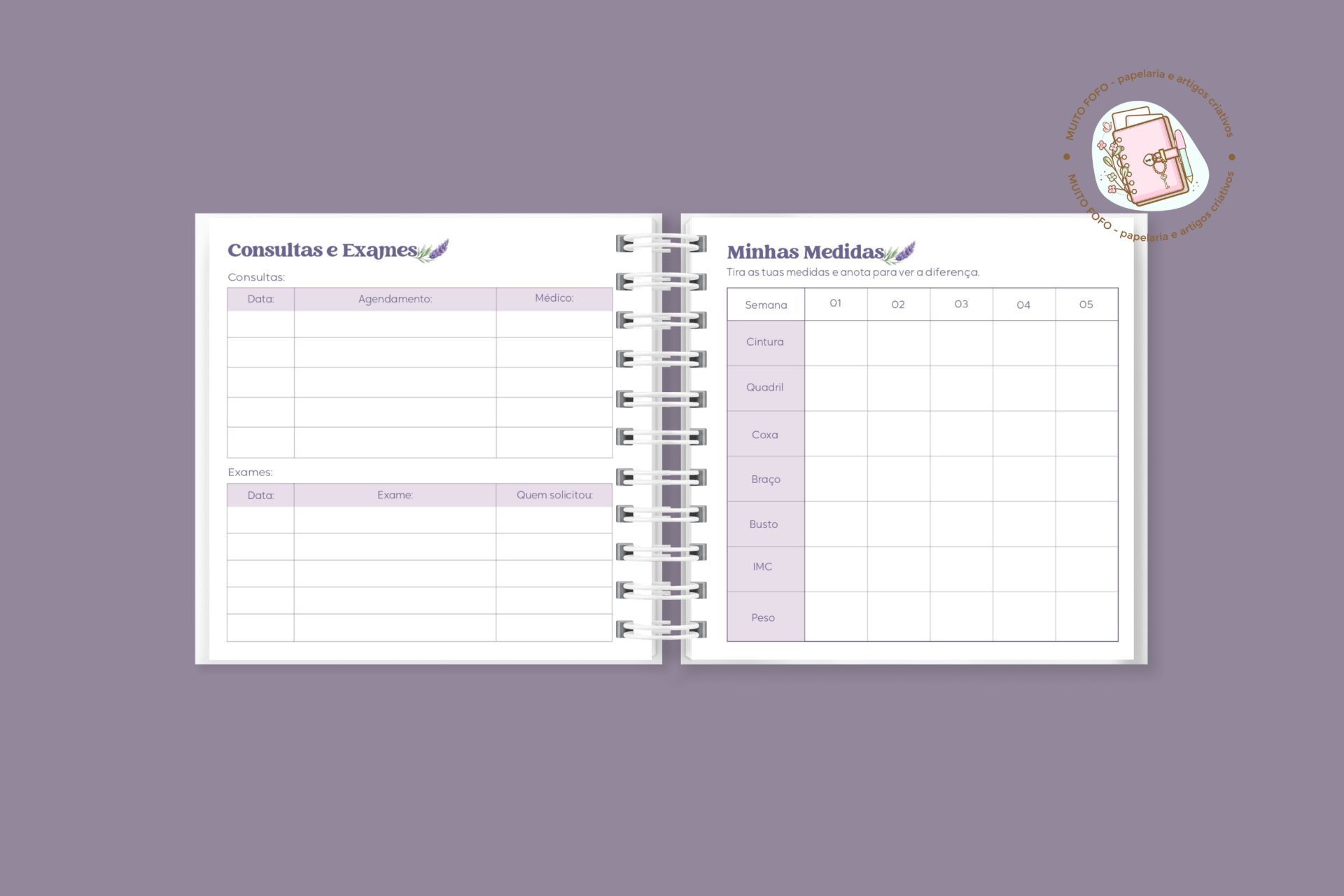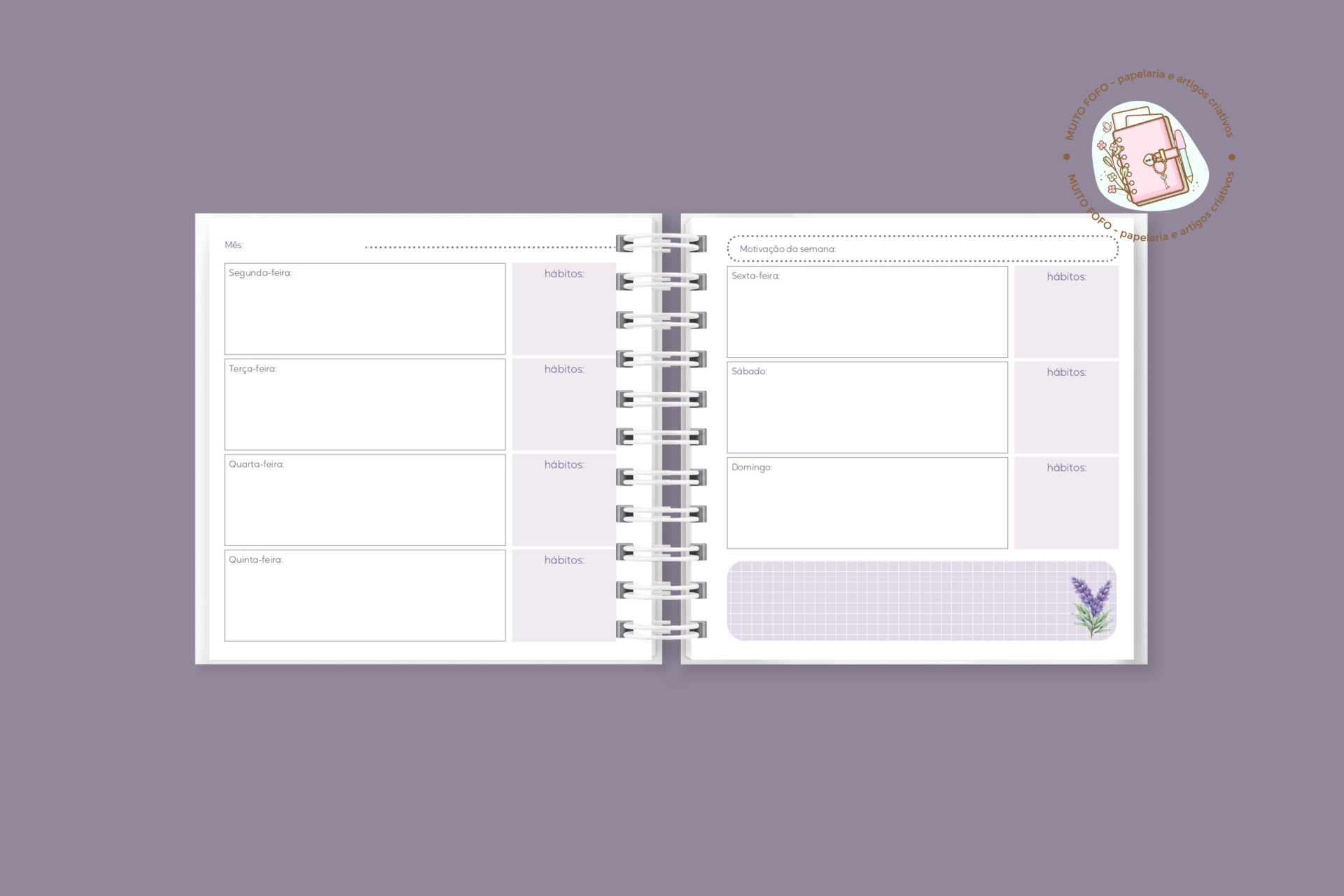 O Planner Autocuidado da Coleção Lavanda foi criado para te ajudar a cuidar de ti de forma consciente — acompanhando emoções, hábitos, saúde e evolução pessoal ao longo do tempo.