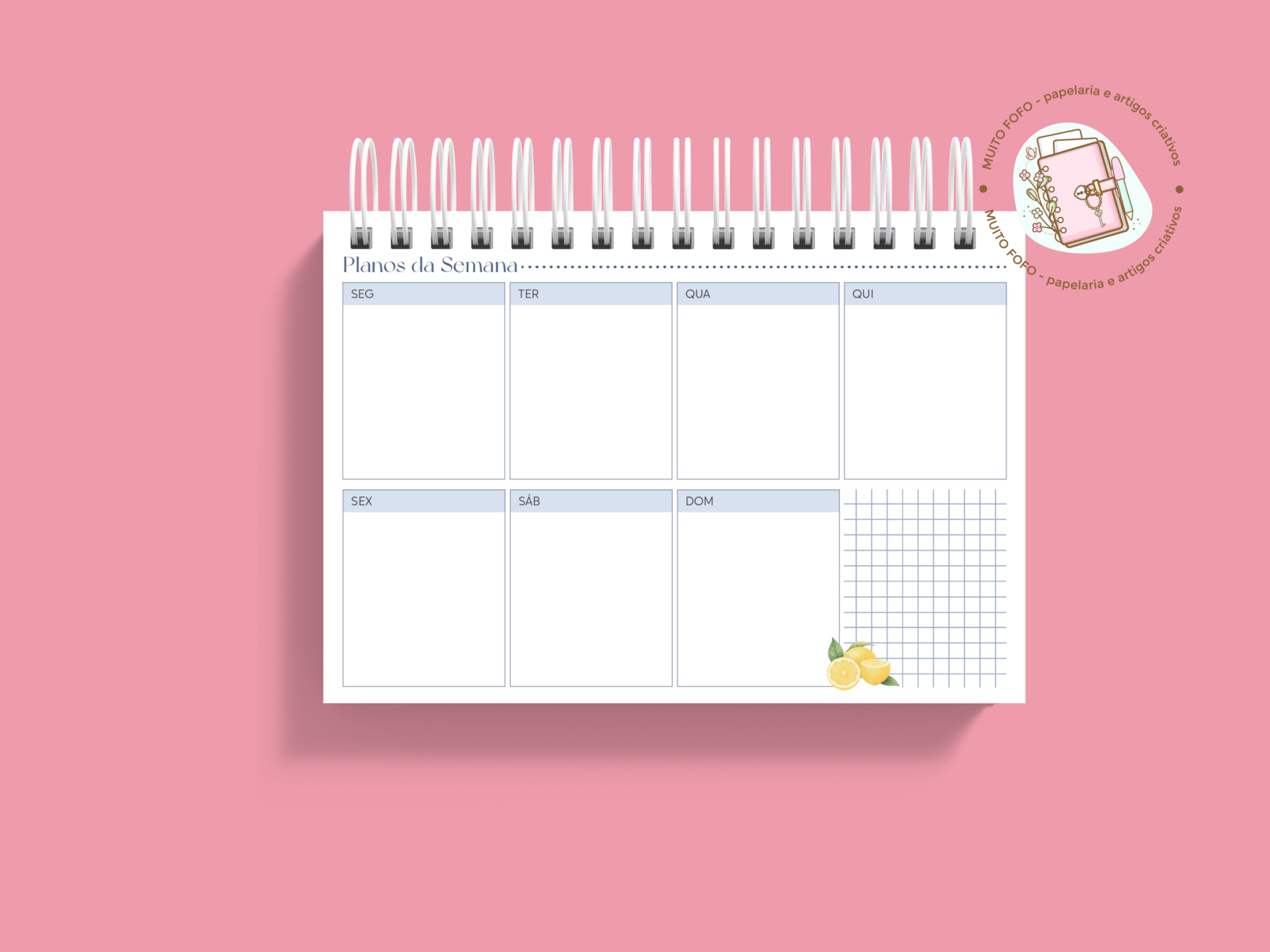 Formato A5 funcional e confortável para consultar e atualizar ao longo da semana