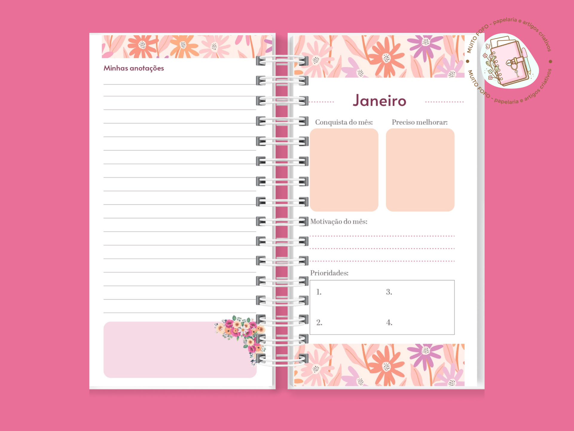 - 📑 176 páginas em papel de 90g, com separadores mensais.