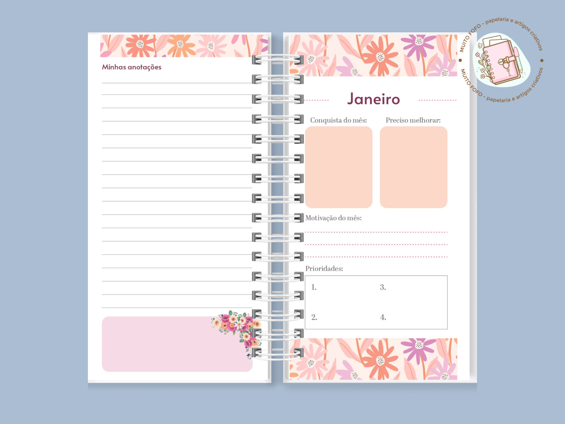 🌸 Planner Permanente Slim – Coleção Mulher