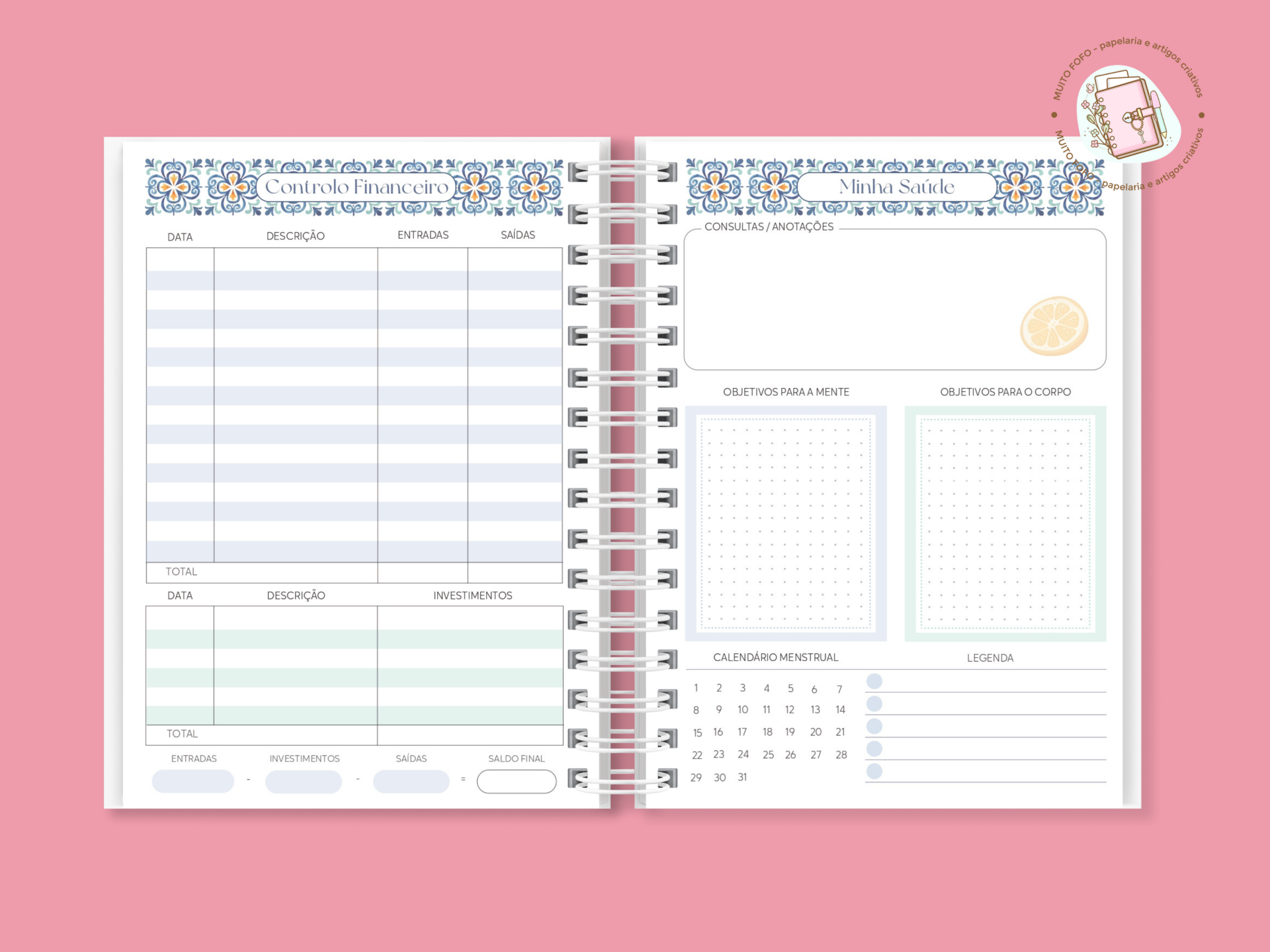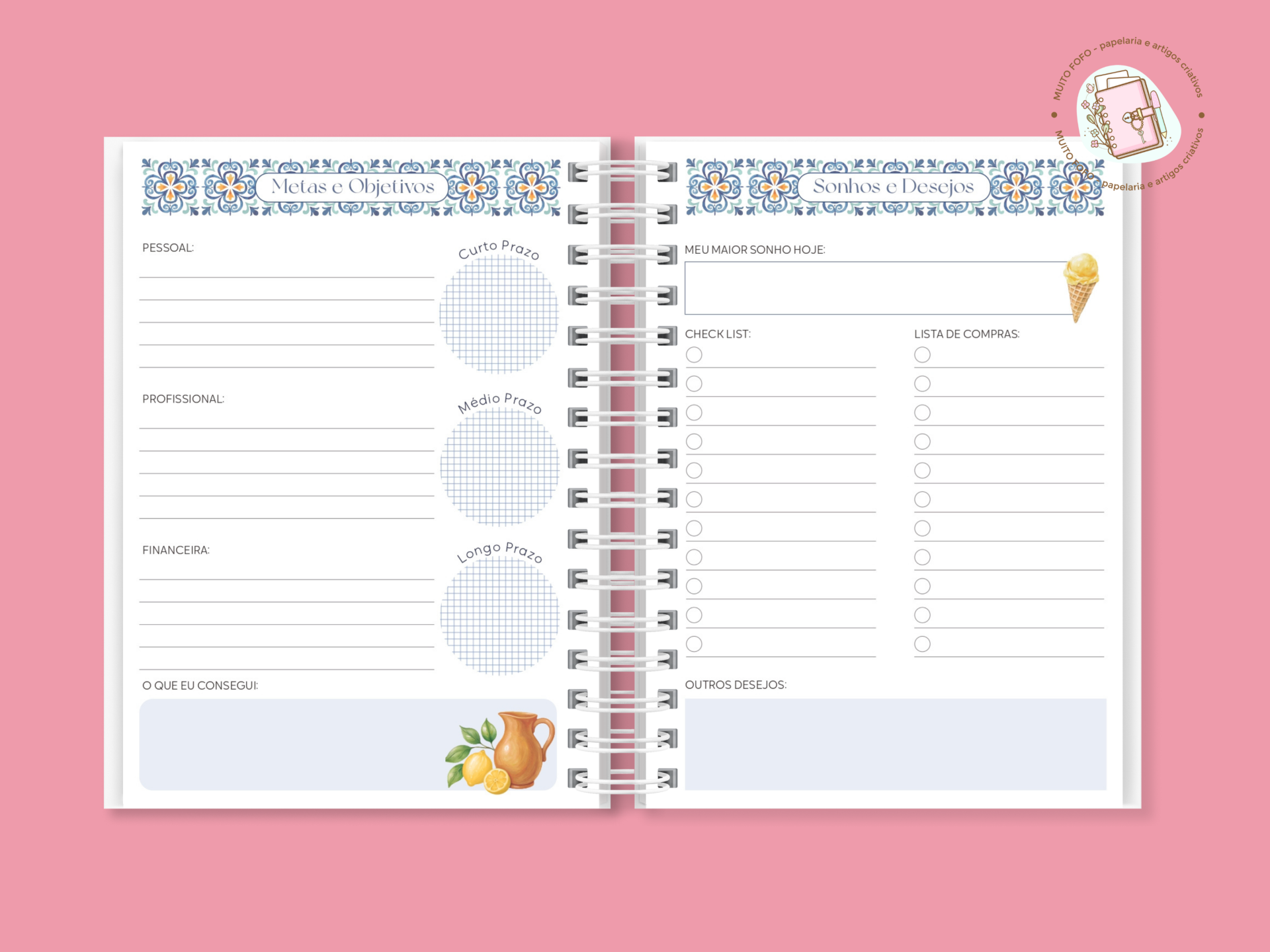 O Planner Summer Feelings foi pensado para quem deseja organizar a vida com leveza, inspiração e aquele toque solar que só o verão transmite. Cada detalhe foi criado à mão, com todo o carinho da Muito Fofo®, para te acompanhar durante o ano inteiro — ao teu ritmo.