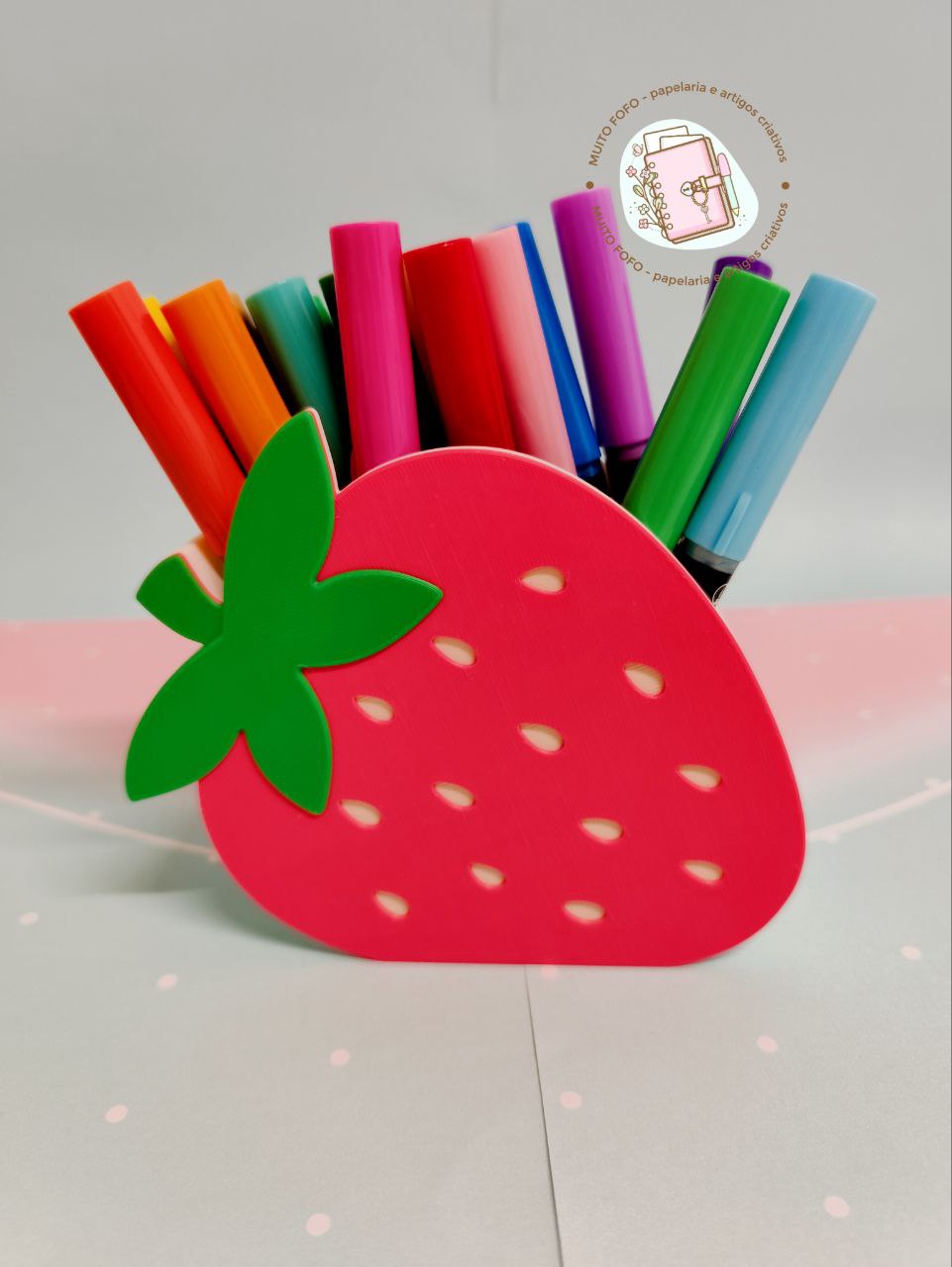O Porta-Canetas Moranguinho Fofo traz o charme irresistível dos morangos para a tua secretária! Produzido em impressão 3D, oferece um espaço prático e encantador para manter canetas e marcadores sempre por perto — com um design lindo que ilumina qualquer cantinho!