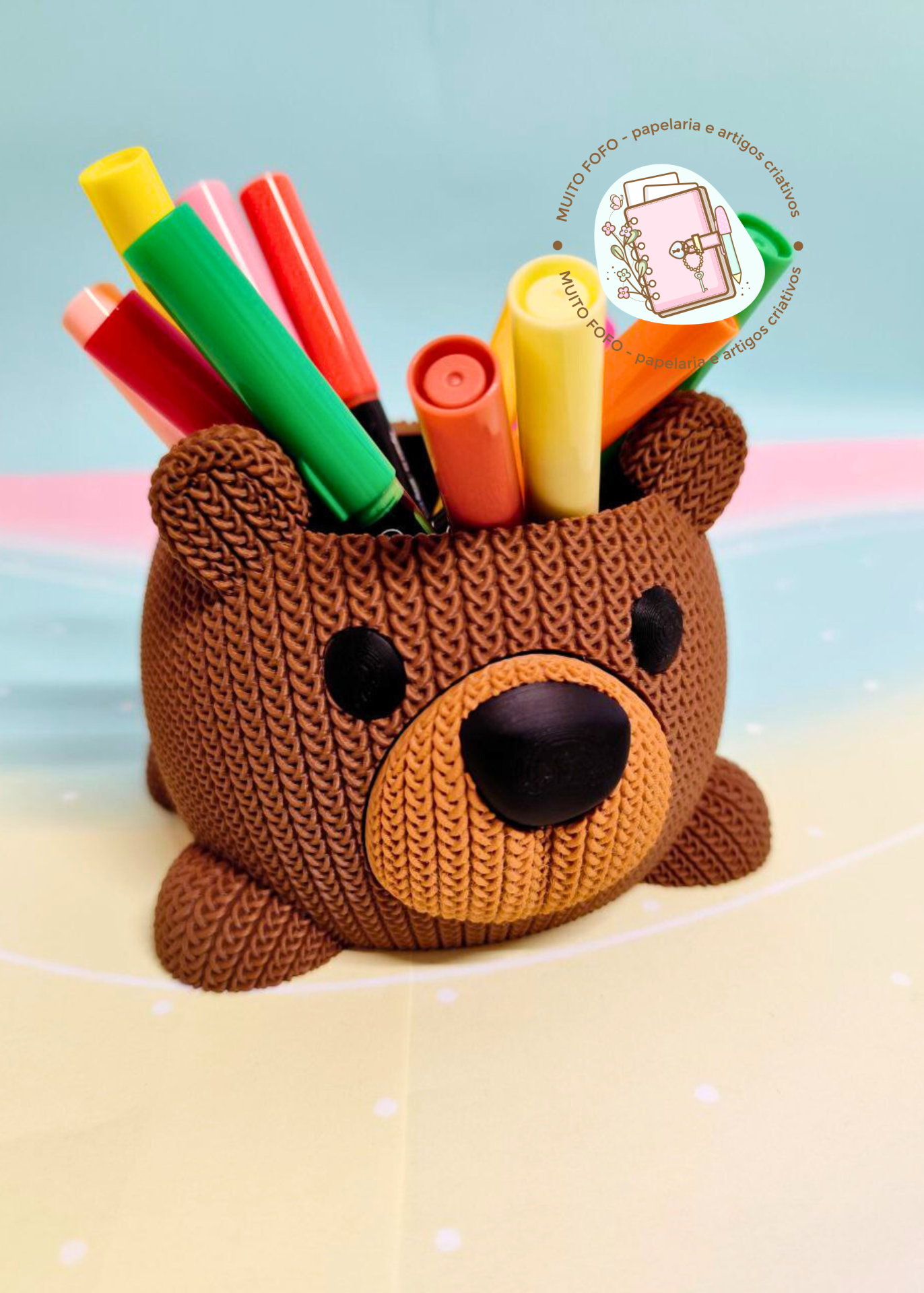 O Porta Canetas Ursinho Caramelo é aquela fofura que transforma qualquer secretária num cantinho mais aconchegante! 🧸💛 Produzido em impressão 3D com textura tricotada super realista, ele mantém as tuas canetas, lápis, marcadores e pequenos acessórios sempre organizados e ao teu alcance.