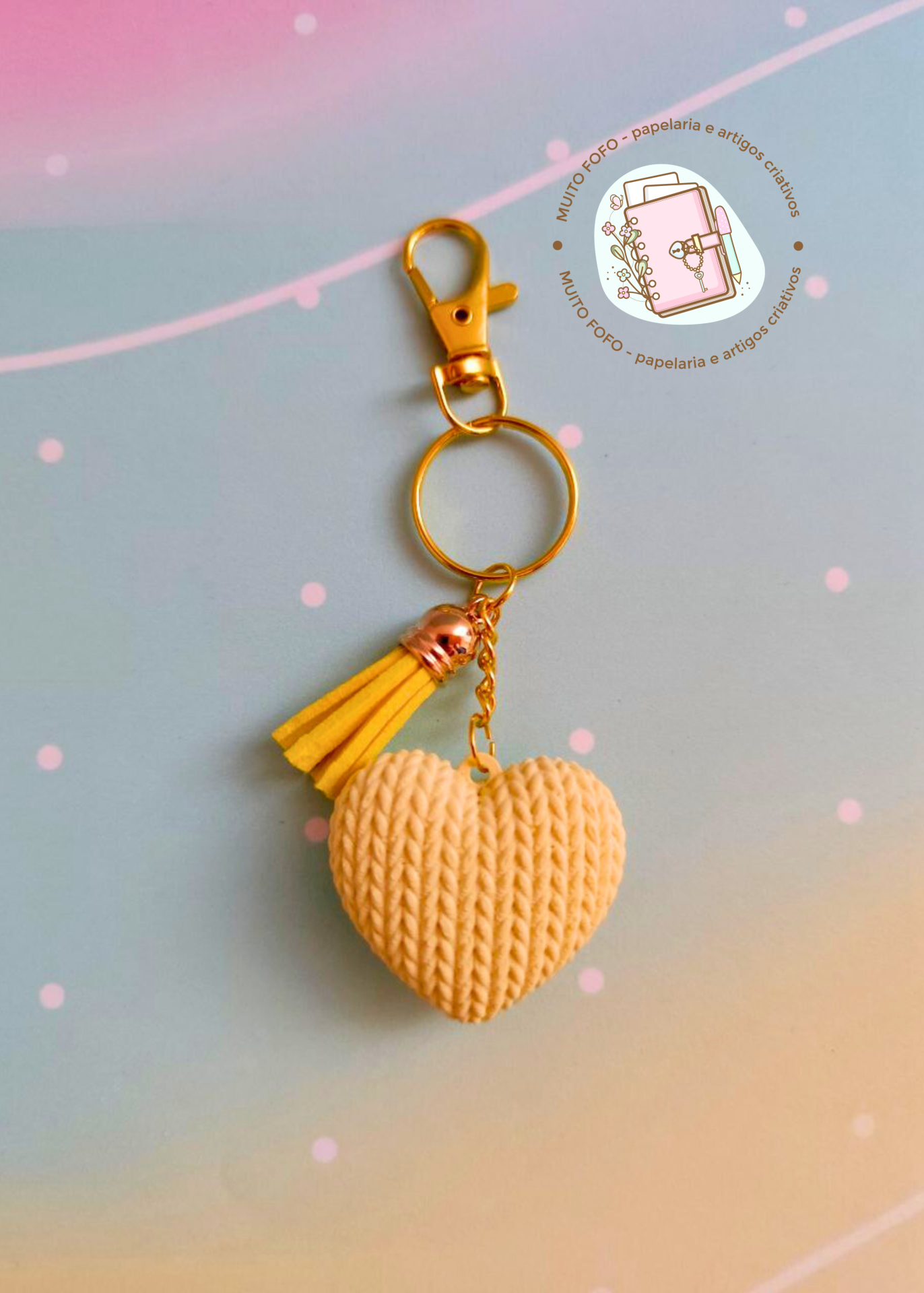 •  Coração com textura tricotada — único e aconchegante