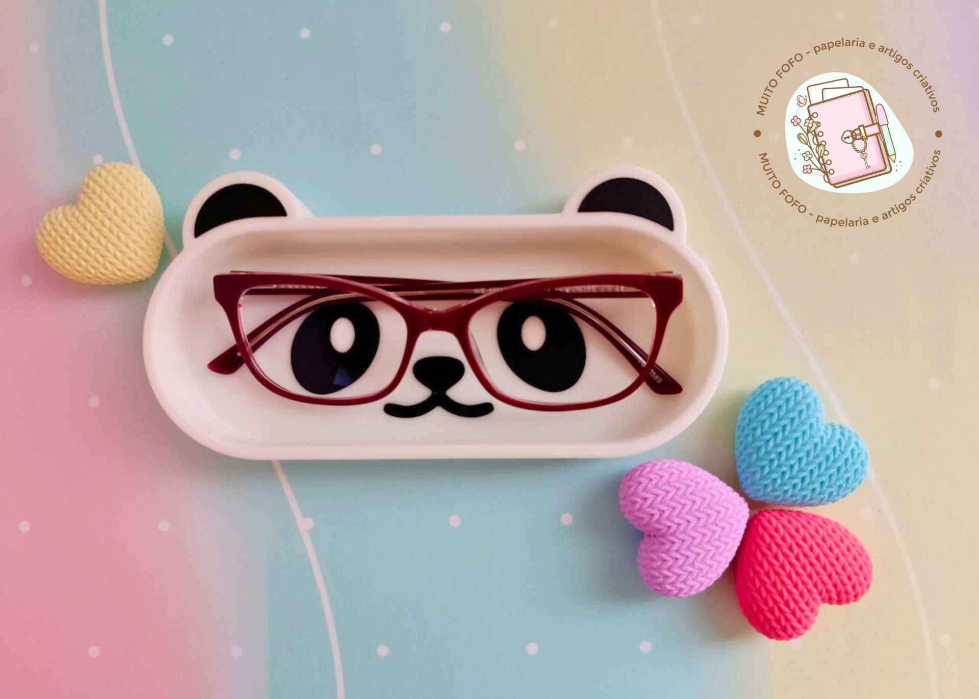 🐼 Porta Óculos — Panda Fofo Para quem ama estilo e fofura na medida certa! O Panda Fofo é aquele acessório que ilumina qualquer espaço. Além de guardar os óculos com segurança, garante um sorriso sempre que olhares para ele ✨
